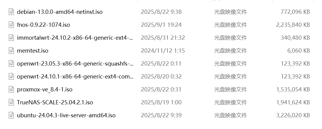 这里我就选择了pve系统。一开始我使用的是pve9.0,后来担心最新版的教程太少,换成了使用8.0,使用体验上感觉没有差别。